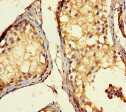 Immunohistochemistry of paraffin-embedded human testis tissue using CSB-PA896747LA01HU at dilution of 1:100
