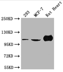Positive WB detected in: 293 whole cell lysate, MCF-7 whole cell lysate, Rat Heart tissue