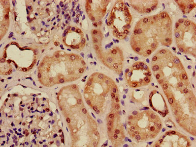 Immunohistochemistry of paraffin-embedded human kidney tissue using CSB-PA001255LA01HU at dilution of 1:100