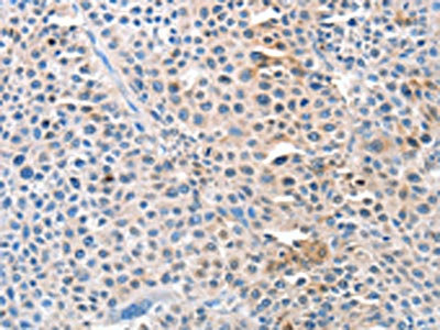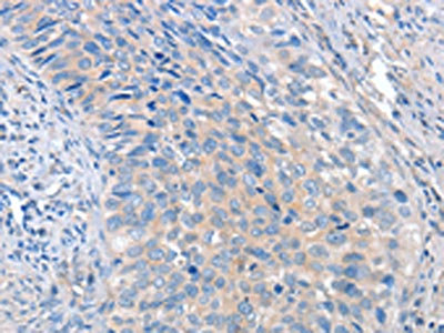 The image on the left is immunohistochemistry of paraffin-embedded Human cervical cancer tissue using CSB-PA069457(ADAM10 Antibody) at dilution 1/35, on the right is treated with fusion protein. (Original magnification: ×200)