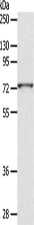 Gel: 8%SDS-PAGE, Lysate: 40 μg, Lane: PC3 cells, Primary antibody: CSB-PA909378(ADAM10 Antibody) at dilution 1/300, Secondary antibody: Goat anti rabbit IgG at 1/8000 dilution, Exposure time: 1 minute