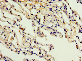 Immunohistochemistry of paraffin-embedded human lung tissue using CSB-PA861182ESR2HU at dilution of 1:100