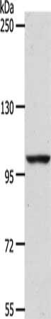 Gel: 8%SDS-PAGE, Lysate: 40 μg, Lane: NIH/3T3 cells, Primary antibody: CSB-PA485300(ADAMTS17 Antibody) at dilution 1/1200, Secondary antibody: Goat anti rabbit IgG at 1/8000 dilution, Exposure time: 1 hour
