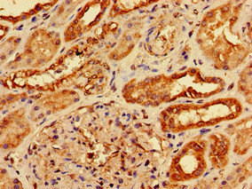 Immunohistochemistry of paraffin-embedded human kidney tissue using CSB-PA865125LA01HU at dilution of 1:100