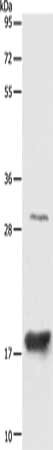 Gel: 10%SDS-PAGE, Lysate: 40 μg, Lane: Mouse Large intestine tissue, Primary antibody: CSB-PA960585(AGR2 Antibody) at dilution 1/1000, Secondary antibody: Goat anti rabbit IgG at 1/8000 dilution, Exposure time: 20 seconds
