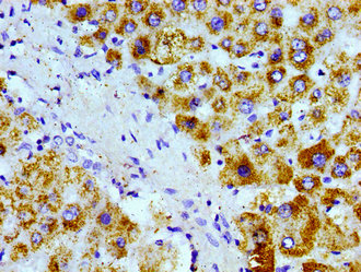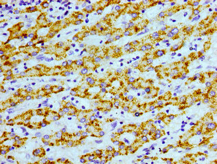 Immunohistochemistry of paraffin-embedded human liver tissue using CSB-PA001468LA01HU at dilution of 1:100