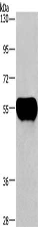 Gel: 10%SDS-PAGE, Lysate: 2 μg, Lane: Human plasma tissue, Primary antibody: CSB-PA068521(AHSG Antibody) at dilution 1/1350, Secondary antibody: Goat anti rabbit IgG at 1/8000 dilution, Exposure time: 10 seconds