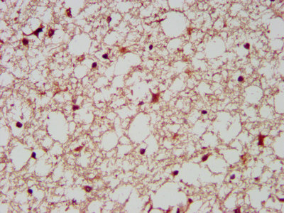 IHC image of CSB-PA618638EA01HU diluted at 1:200 and staining in paraffin-embedded human brain tissue performed on a Leica BondTM system. After dewaxing and hydration, antigen retrieval was mediated by high pressure in a citrate buffer (pH 6.0). Section was blocked with 10% normal goat serum 30min at RT. Then primary antibody (1% BSA) was incubated at 4°C overnight. The primary is detected by a biotinylated secondary antibody and visualized using an HRP conjugated SP system.