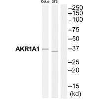 免疫原:Synthesized peptide derived from C-terminal of Human AKR1A1.