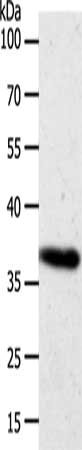 Gel: 10%SDS-PAGE, Lysate: 27 μg, Lane: Hela cells, Primary antibody: CSB-PA204064(AKR1B1 Antibody) at dilution 1/700, Secondary antibody: Goat anti rabbit IgG at 1/8000 dilution, Exposure time: 4 seconds