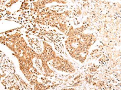 The image on the left is immunohistochemistry of paraffin-embedded Human colorectal cancer tissue using CSB-PA033785(ALDH3A2 Antibody) at dilution 1/20, on the right is treated with fusion protein. (Original magnification: ×200)
