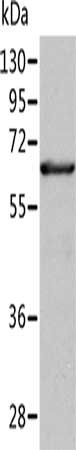 Gel: 10%SDS-PAGE, Lysate: 40 μg, Lane: Human fetal liver tissue, Primary antibody: CSB-PA252846(ALDH4A1 Antibody) at dilution 1/350, Secondary antibody: Goat anti rabbit IgG at 1/8000 dilution, Exposure time: 30 seconds