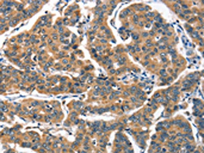 The image on the left is immunohistochemistry of paraffin-embedded Human breast cancer tissue using CSB-PA624049(ALOX15 Antibody) at dilution 1/60, on the right is treated with synthetic peptide. (Original magnification: ×200)