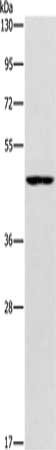 Gel: 8%SDS-PAGE, Lysate: 40 μg, Lane: Jurkat cells, Primary antibody: CSB-PA248410(AMACR Antibody) at dilution 1/350, Secondary antibody: Goat anti rabbit IgG at 1/8000 dilution, Exposure time: 20 seconds