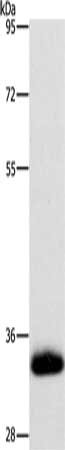 Gel: 8%SDS-PAGE, Lysate: 60 μg, Lane: Human testis tissue, Primary antibody: CSB-PA194113(AMBP Antibody) at dilution 1/500, Secondary antibody: Goat anti rabbit IgG at 1/8000 dilution, Exposure time: 10 seconds