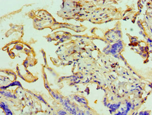 Immunohistochemistry of paraffin-embedded human placenta tissue using CSB-PA892130ESR1HU at dilution of 1:100
