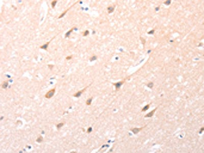 The image on the left is immunohistochemistry of paraffin-embedded Human brain tissue using CSB-PA337817(ANGPTL2 Antibody) at dilution 1/20, on the right is treated with synthetic peptide. (Original magnification: ×200)