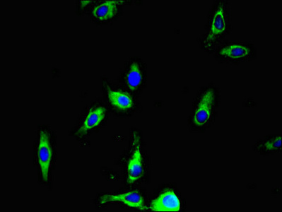 Immunofluorescent analysis of Hela cells using CSB-PA653477LA01HU at dilution of 1:100 and Alexa Fluor 488-congugated AffiniPure Goat Anti-Rabbit IgG(H+L)