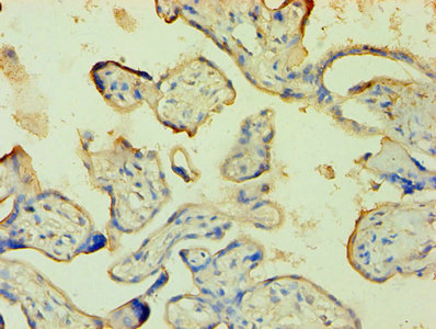 Immunohistochemistry of paraffin-embedded human placenta tissue using CSB-PA001846YA01HU at dilution of 1:100