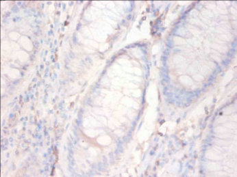 Immunohistochemistry of paraffin-embedded human colon cancer using CSB-PA06384A0Rb at dilution of 1:50