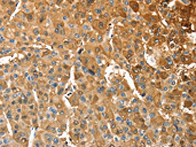 The image on the left is immunohistochemistry of paraffin-embedded Human liver cancer tissue using CSB-PA576592(ANXA9 Antibody) at dilution 1/30, on the right is treated with fusion protein. (Original magnification: ×200)
