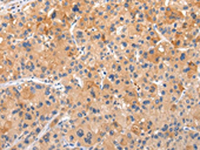 The image on the left is immunohistochemistry of paraffin-embedded Human liver cancer tissue using CSB-PA086984(AP2A1 Antibody) at dilution 1/20, on the right is treated with synthetic peptide. (Original magnification: ×200)