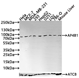 All lanes: AP4B1 antibody at 1:1000