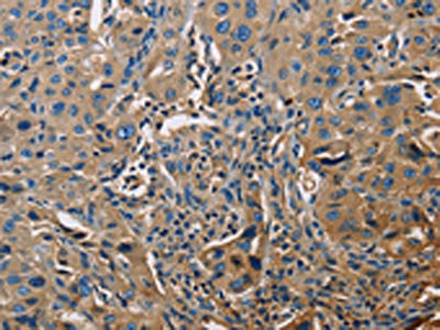 The image on the left is immunohistochemistry of paraffin-embedded Human lung cancer tissue using CSB-PA225650(APOA1 Antibody) at dilution 1/25, on the right is treated with fusion protein. (Original magnification: ×200)