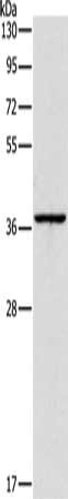 Gel: 10%SDS-PAGE, Lysate: 40 μg, Lane: Huvec cells, Primary antibody: CSB-PA832036(APOL2 Antibody) at dilution 1/375, Secondary antibody: Goat anti rabbit IgG at 1/8000 dilution, Exposure time: 40 seconds