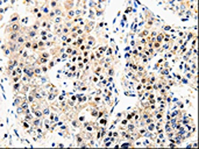 The image on the left is immunohistochemistry of paraffin-embedded Human liver cancer tissue using CSB-PA123968(APP Antibody) at dilution 1/100, on the right is treated with synthetic peptide. (Original magnification: ×200)