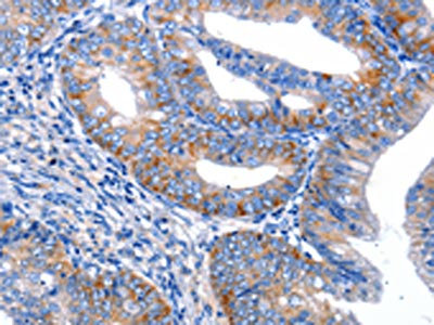 The image on the left is immunohistochemistry of paraffin-embedded Human cervical cancer tissue using CSB-PA056943(AR Antibody) at dilution 1/20, on the right is treated with synthetic peptide. (Original magnification: ×200)