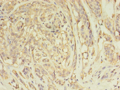 Immunohistochemistry of paraffin-embedded human breast cancer using CSB-PA002003LA01HU at dilution of 1:100