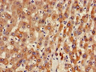 Immunohistochemistry of paraffin-embedded human liver tissue using CSB-PA002003LA01HU at dilution of 1:100