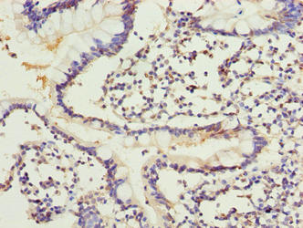 Immunohistochemistry of paraffin-embedded human small intestine tissue using CSB-PA614878LA01HU at dilution of 1:100