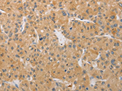 The image on the left is immunohistochemistry of paraffin-embedded Human liver cancer tissue using CSB-PA172514(ARSK Antibody) at dilution 1/30, on the right is treated with fusion protein. (Original magnification: ×200)