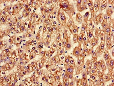 Immunohistochemistry of paraffin-embedded human liver tissue using CSB-PA002208LA01HU at dilution of 1:100