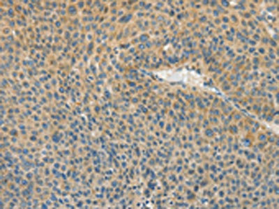 The image on the left is immunohistochemistry of paraffin-embedded Human liver cancer tissue using CSB-PA790667(ASPA Antibody) at dilution 1/80, on the right is treated with fusion protein. (Original magnification: ×200)