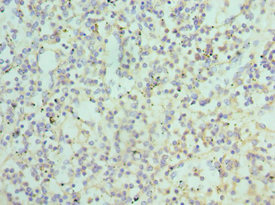 Immunohistochemistry of paraffin-embedded human spleen tissue using CSB-PA734569ESR1HU at dilution of 1:100