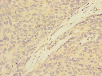 Immunohistochemistry of paraffin-embedded human ovarian cancer using CSB-PA883357ESR1HU at dilution of 1:100