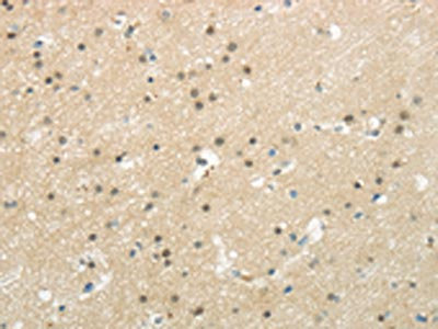 相關(guān)疾?。?/div>BAZ1B is located in the Williams-Beuren syndrome (WBS) critical region. WBS results from a hemizygous deletion of several genes on chromosome 7q11.23, thought to arise as a consequence of unequal crossing over between highly homologous low-copy repeat sequences flanking the deleted region. Haploinsufficiency of BAZ1B may be the cause of certain cardiovascular and musculo-skeletal abnormalities observed in the disease.亞細(xì)胞定位:Nucleus.蛋白家族:WAL family, BAZ1B subfamily組織特異性:Ubiquitously expressed with high levels of expression in heart, brain, placenta, skeletal muscle and ovary.數(shù)據(jù)庫(kù)鏈接: