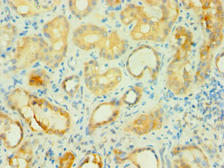 Immunohistochemistry of paraffin-embedded human kidney tissue using CSB-PA002601ESR1HU at dilution of 1:100
