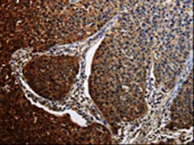 The image on the left is immunohistochemistry of paraffin-embedded Human renal cancer tissue using CSB-PA225375(BID Antibody) at dilution 1/25, on the right is treated with fusion protein. (Original magnification: ×200)