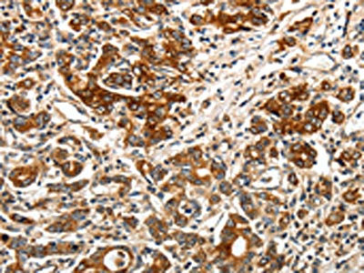 The image on the left is immunohistochemistry of paraffin-embedded Human gastric cancer tissue using CSB-PA271700(BIRC6 Antibody) at dilution 1/40, on the right is treated with synthetic peptide. (Original magnification: ×200)
