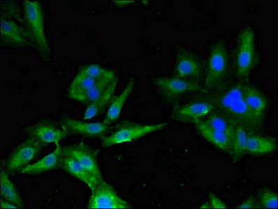 Immunofluorescent analysis of Hela cells using CSB-PA840984LA01HU at dilution of 1:100 and Alexa Fluor 488-congugated AffiniPure Goat Anti-Rabbit IgG(H+L)