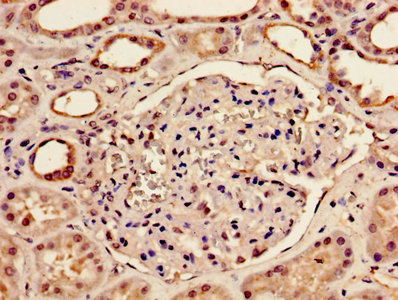 Immunohistochemistry of paraffin-embedded human kidney tissue using CSB-PA09419A0Rb at dilution of 1:100
