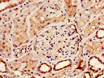 Immunohistochemistry of paraffin-embedded human kidney tissue using CSB-PA05805A0Rb at dilution of 1:100