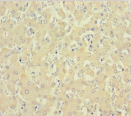 Immunohistochemistry of paraffin-embedded human liver tissue using CSB-PA03474A0Rb at dilution of 1:100