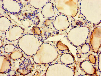 Immunohistochemistry of paraffin-embedded human thyroid tissue using CSB-PA673367LA01HU at dilution of 1:100
