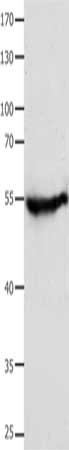Gel: 8%SDS-PAGE, Lysate: 40 μg, Lane: Human fetal muscle tissue, Primary antibody: CSB-PA332497(CAP2 Antibody) at dilution 1/700, Secondary antibody: Goat anti rabbit IgG at 1/8000 dilution, Exposure time: 1 minute
