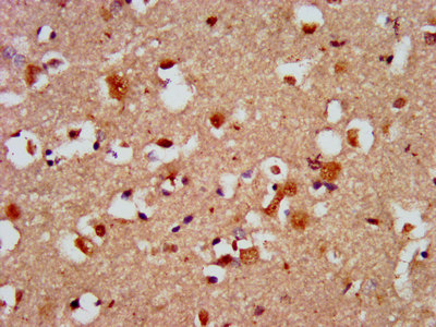 IHC image of CSB-PA861167LA01HU diluted at 1:500 and staining in paraffin-embedded human brain tissue performed on a Leica BondTM system. After dewaxing and hydration, antigen retrieval was mediated by high pressure in a citrate buffer (pH 6.0). Section was blocked with 10% normal goat serum 30min at RT. Then primary antibody (1% BSA) was incubated at 4°C overnight. The primary is detected by a biotinylated secondary antibody and visualized using an HRP conjugated SP system.
